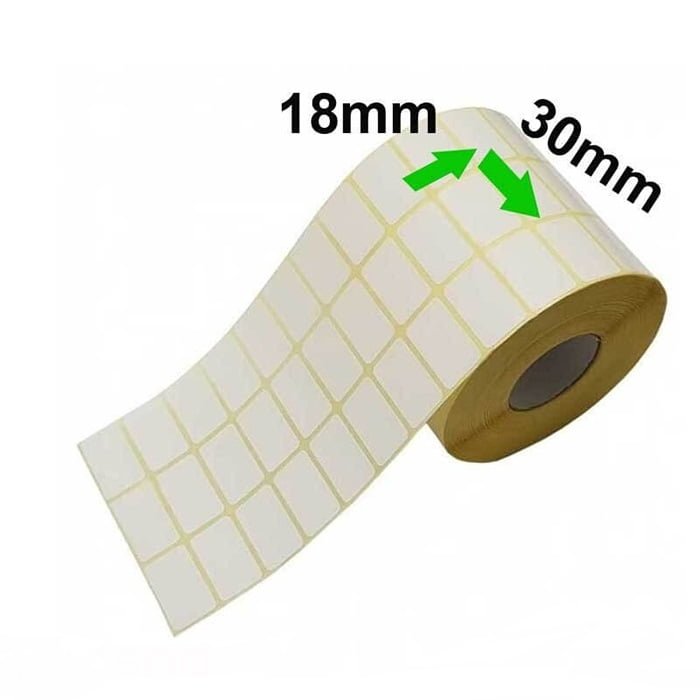 لیبل کاغذی ۱۸ ×۳۰ از انواع برچسب های کاغذی است که با تعداد بالا و چسبندگی عالی بسیار مورد توجه مصرف کنندگان قرار گرفته است.در هر رول این مدل لیبل تعداد ۶۰۰۰ عدد برچسب به صورت ۳ ردیفه قرار گرفته است که به راحتی در هر دستگاهی برای چاپ قرار می گیردمکانیسم چاپ بر روی برچسب کاغذی فوق حرارتی غیر مستقیم می باشد و برای هر بار چاپ به ریبونی سازگار نیاز دارید.