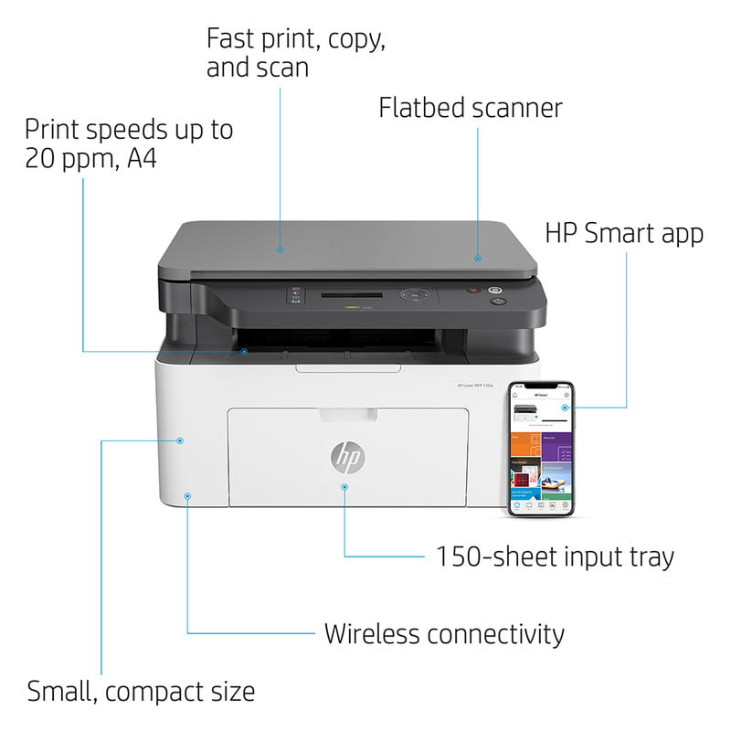 اگر قصد خرید پرینتر دارید؛ پرینتر لیزی یکی از بهترین‌های موجود در بازار است. سرعت و دقت این نوع پرینتر بسیار بالاتر از سایر دستگاه‌ها است ازاین‌رو از این مدل برای مصارف خانگی یا اداری استفاده می‌کنند. شرکت اچ پی یکی از برندهای پرقدرت در تولید لوازم‌های الکترونیکی و دیجیتال است. اگر قصد خرید یک پرینتر بسیار پرکاربرد را دارید که سالیان سال برای شما کار کند؛ پرینتر چندکاره لیزری اچ پی مدل Laser MFP 135w بسیار مناسب شما است. این مدل قابلیت سه‌گانه پرینت، چاپ و اسکن را انجام می‌دهد و در حقیقت با خرید این دستگاه خود را بی‌نیاز از سایر دستگاه‌های اضافی کرده‌اید. مدل Laser MFP 135w قادر به چاپ تک‌رنگ روی برگه A4 است و قابلیت چاپ 20 برگ در دقیقه را دارد. این پرینتر جهت کار با کامپیوتر تنها با سیستم‌عامل ویندوز 7 یا نسخه‌های جدیدتر سازگار است و با سیستم‌عامل‌های غیر ویندوزی کار نمی‌کند. ویژگی اتصال بی‌سیم Wi-fi از امکانات کاربردی و ویژه این پرینتر چندکاره است. همچنین از طریق آن می‌توانید پرینت با موبایل و تبلت را نیز انجام دهید. این پرینتر چندکاره اچ پی با حافظه 128 مگابایت، پردازنده 600 مگاهرتز و حداکثر توان چاپ ماهانه 10000 صفحه، یک دستگاه اقتصادی و کامل برای افرادی که نیازی به قابلیت فکس ندارند محسوب می‌شود. همچنین قابلیت کار با اپلیکیشن‌های HP Smart App ، HP ePrint ،Apple AirPrint™ ،Mopria™-certified ،Wireless Direct Printing ،Mobile Apps، Google Cloud Print برای پرینت بی‌سیم و از راه دور را دارد. از طریق قابلیت وای فای دایرکت نیز چندین دستگاه‌ قادر به اتصال و پرینت در کوتاه‌ترین زمان ممکن خواهند بود.