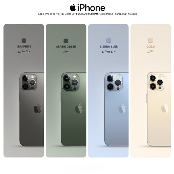 گوشی موبایل اپل مدل iPhone 13 Pro Max تک سیم کارت ظرفیت 512 گیگابایت و رم 6 گیگابایت – اروپا نات اکتیو